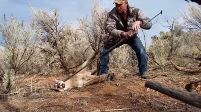 2018年12月在猶他州, 獵人發行陷入陷阱美洲獅. 使用一個循環來檢查動物和格外小心打開了陷阱. 特別危險的任務.