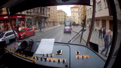電車司機幫助小男孩找到他的父母, 誰丟失,因為在布拉格,捷克共和國的另一個電車開始.