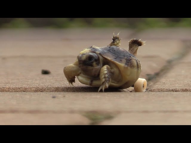 寶貝犀牛享受第一次發現雪! 飼養員拿了一小堆東西給她。.