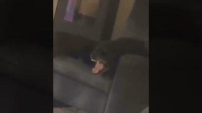 這狗是試圖清除他的喉嚨, 但它看起來像一個邪惡的魔鬼.