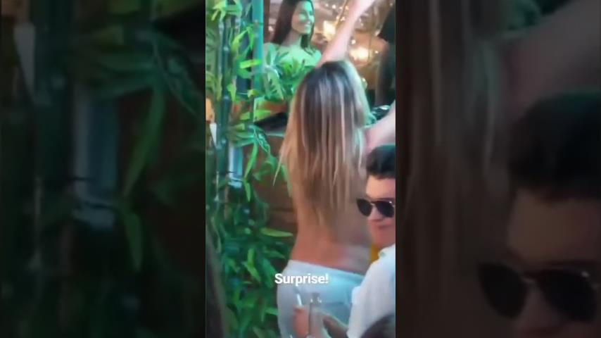 視頻記錄之一的戶外夜總會的舞池裡一個美麗的金發跳舞. 突然, 金發會變成對相機. 驚喜!