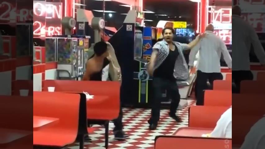 一名男子在餐廳吵架時給出了一個“藝術”巴掌倒掛.