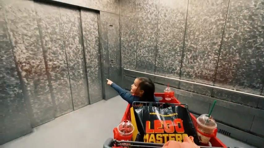 爸爸在電梯有兩個門的小女兒進入, 並要求這門相信一定會打開出口. 使用數字特效由丹尼爾·橋本創建的視頻.