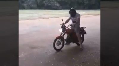 穿丁字褲的, 一個人會令我們的雜技演示騎摩托車技巧.