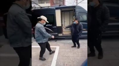 由於他們無法撼動,因為冠狀病毒傳播的手, 中國人發明了“武漢禮炮”: 歡迎彼此的腿打擊.