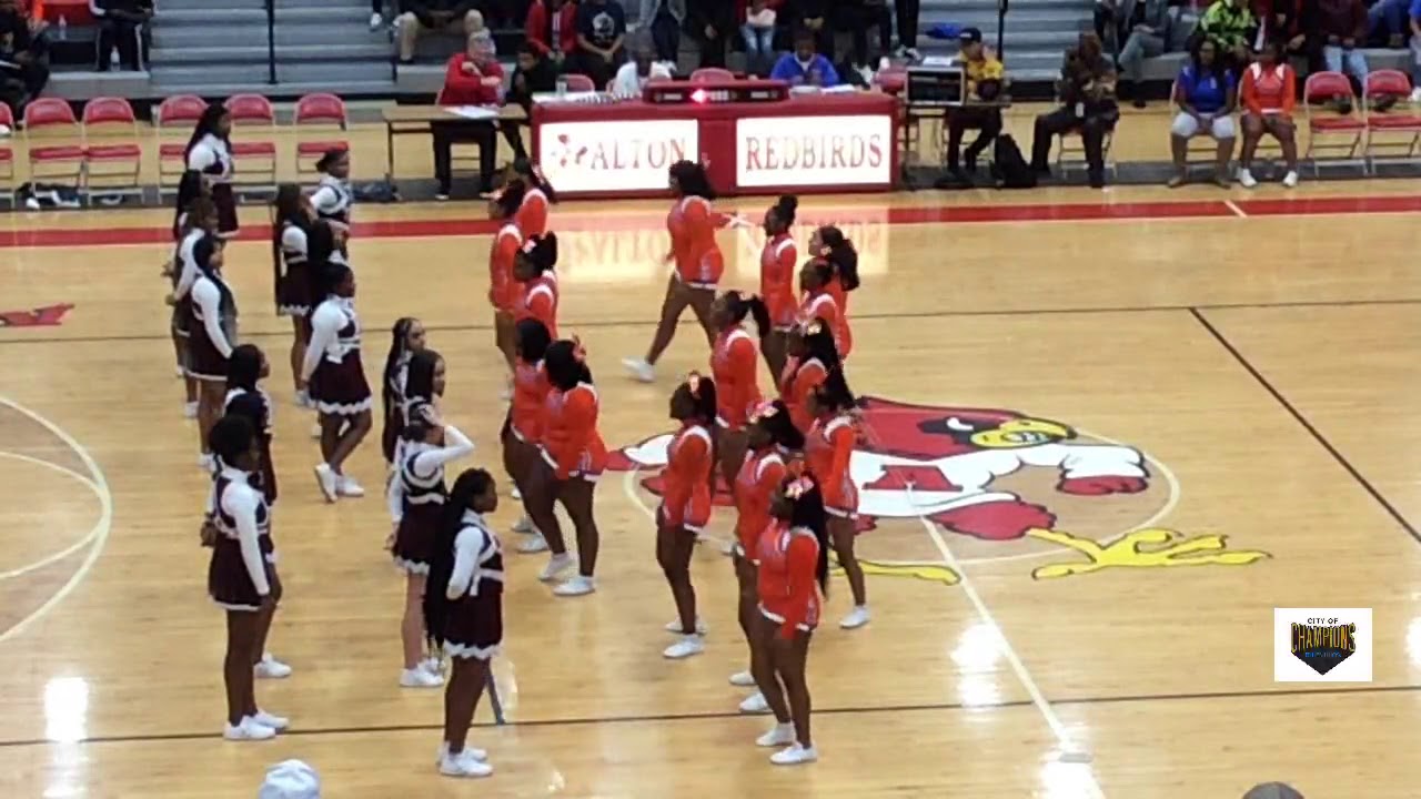 兩組拉拉隊在聖舞蹈比賽中打了起來. 路易斯,美國.