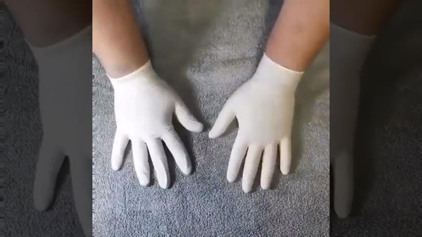 戴手套, 一個人告訴我們如何正確洗手. 採用黑色染料向我們展示所有的點,以獲得肥皂. 如果只是搓內部, 肥皂保持在該點. 因此,有必要在腳趾之間和在手的頂部擦到處伸展肥皂和消毒徹底.