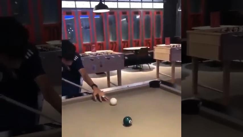 一個年輕人在西班牙效力於第一次台球. 也許你應該永遠從進入台球廳被取締.