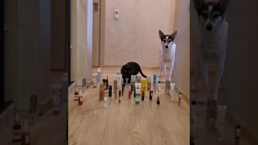 誰將是最能幹的狗,如銀河系和貓科菲, 在躺在地上的物體之間通過而不會扔掉它們;