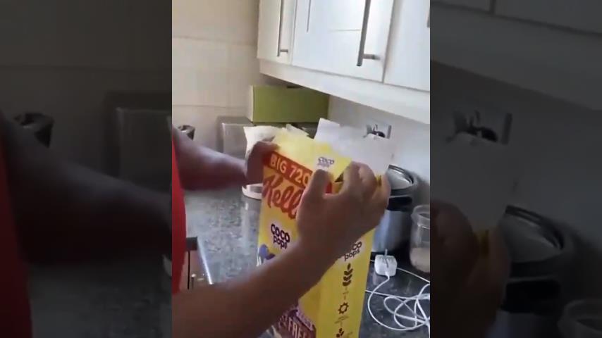 這個人向我們展示了一種聰明實用的方法,可以在下次使用前關閉穀物盒。.