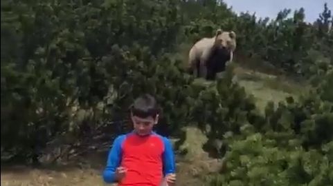 在Sporminore附近的山上散步時 (特倫蒂諾—上阿迪傑地區) 在義大利, 一隻熊從一個孩子後面的灌木叢中露出來. 幸運的是, 孩子保持鎮定,走近幾米遠的成年人。. 看著他的場景的動物最終朝相反的方向離開. 特倫蒂諾地區有80至90隻熊.