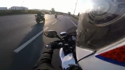 雅馬哈TMAX 530踏板車和員警的雅馬哈TDM 900摩托車之間的令人印象深刻的追逐, 在法國的公路上. 逃犯持續了幾分鐘,在汽車之間猛烈撞擊, 在警察強迫他從踏板車上摔下來之前.