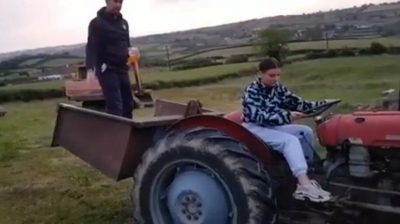 用拖拉機上的啤酒, 一個男人在第一次駕駛課上教一個女孩. 這個女孩起初小心翼翼, 但是它將很快獲得信心並提高速度. 事實證明這是一個大錯誤.