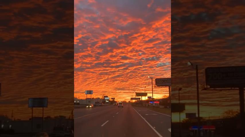 駕車者在美國蒂夫頓日出時記錄了美麗的多雲的天空.