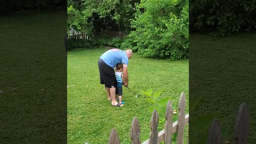 一個小男孩學會了和父親一起打高爾夫球. 一切都表明他是未來的冠軍.