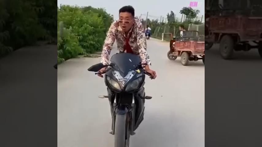 一個人騎著一輛奇怪的摩托車.