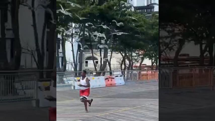 海鷗追一個男人吃披薩