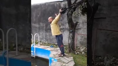 越南男子首次嘗試臨時健身器材. 機制設計出了點問題。。.
