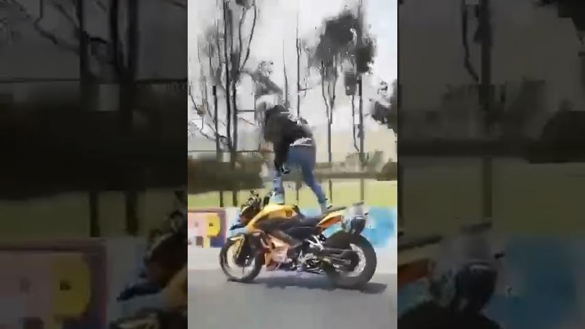 看著摩托車從員警跑到路邊的崩潰. 影片以街頭自行車特技騎士推桿開始。.
