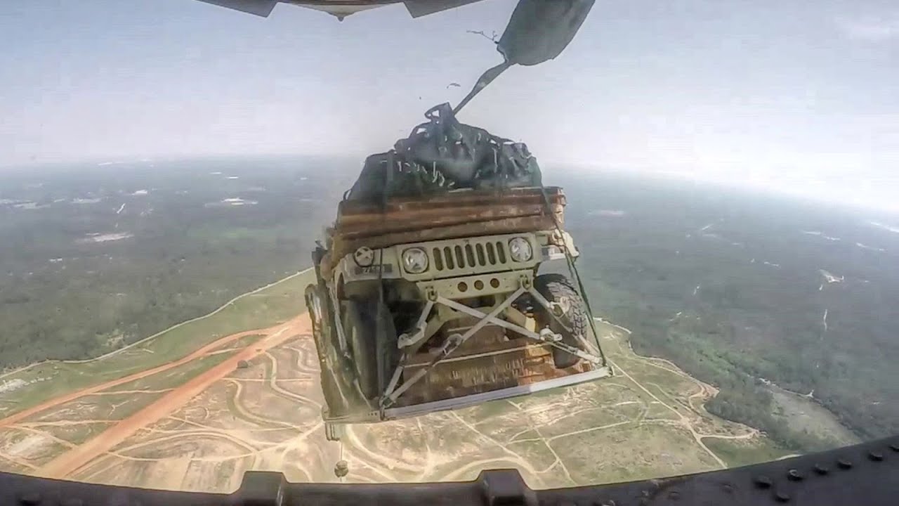 美國空軍一架 C-17 Globemaster III 飛機用降落傘擊落 8 名悍馬士兵,令人印象深刻.