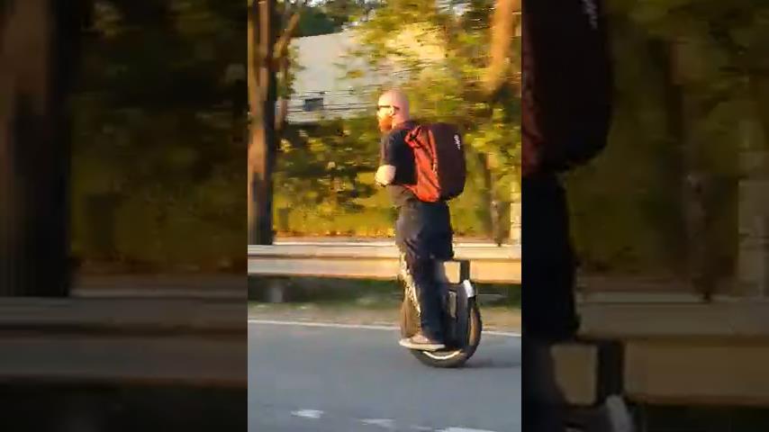 一個人證明了電動單輪車有多不安全, 他在路上高速移動.