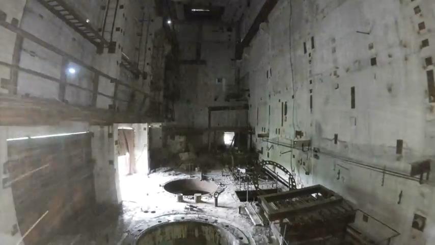 無人機捕獲切爾諾貝利工廠反應堆5的視頻, 檢查這棟樓中是否還有鈾. 1986 年災難發生時,5 號反應堆仍在建設中.