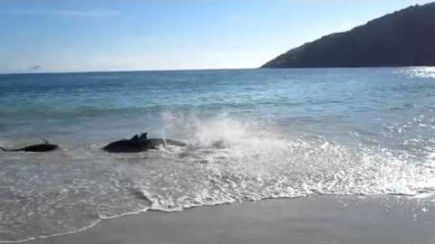 約30只海豚被強大的海流捲走,衝上巴西Arraial do Cabo小鎮的海灘, 而當地人看事件急於説明.