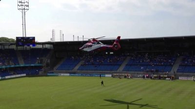 直升機從體育場的運動場起飛, 相機的幀數/秒與螺旋槳的轉速相同.