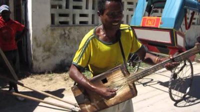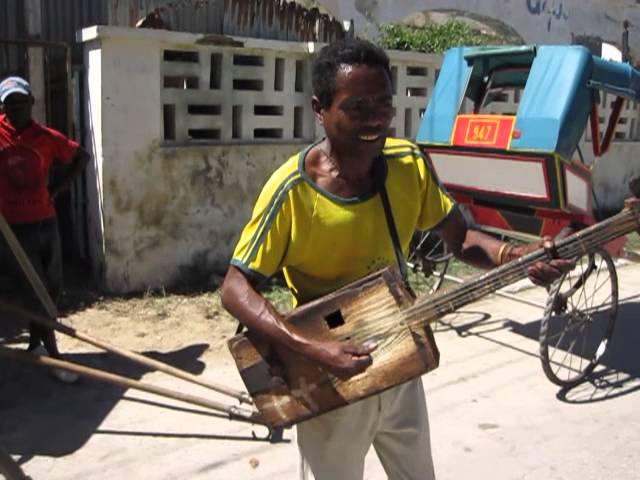 馬達加斯加的一個人用自己製作的吉他演奏音樂.