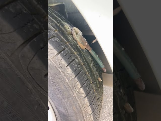 駕駛人發現鋼絲鉗被困在汽車輪胎中.