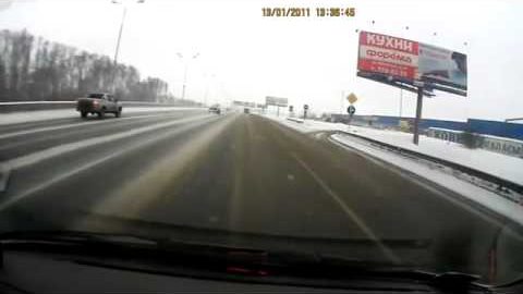 在莫斯科的方式變幻車道變化. 幸運的是沒有人受傷.
