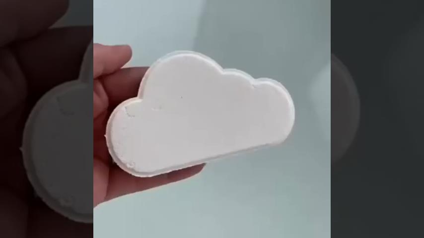 雲狀的沐浴鹽, 當足夠融化時會釋放出各種顏色並形成彩虹.