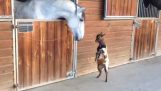 會在他的口中,Kruzah 馬逗樂了玩塑膠雞.