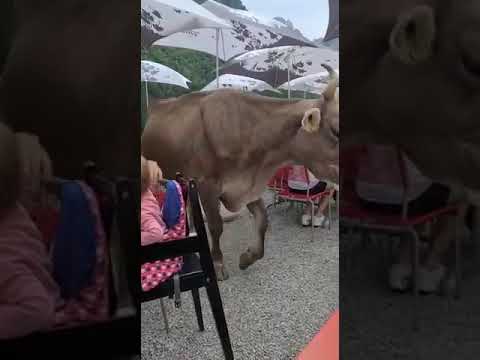 一頭牛在山區餐廳留下禮物