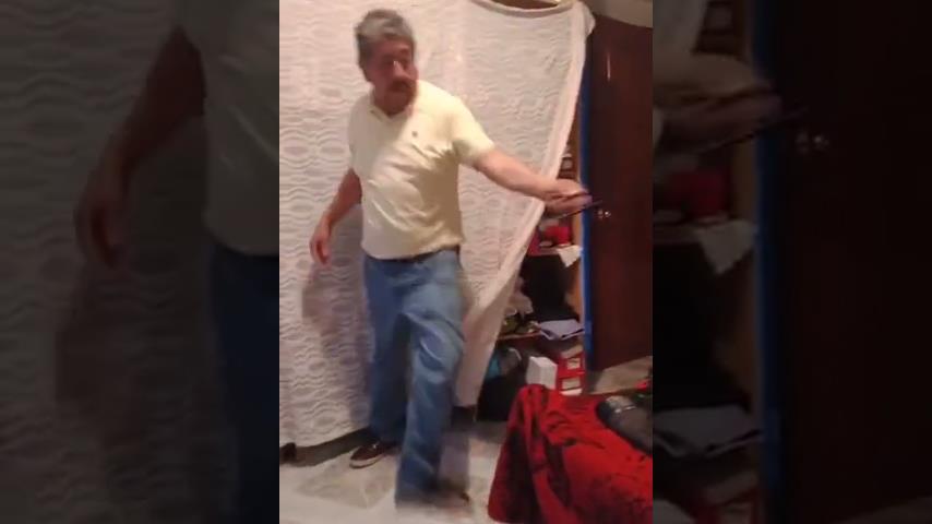 一個女人想給剛回家的披薩拍一個視頻, 但她的兩隻狗...