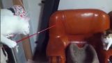 在迪拜的卡鉗遊戲, 貓躺在舒適的毛絨公仔之間.