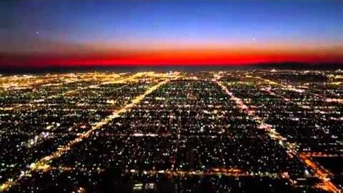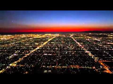 在夜間降落在洛杉磯國際機場的民航飛機, 與視圖從駕駛艙.