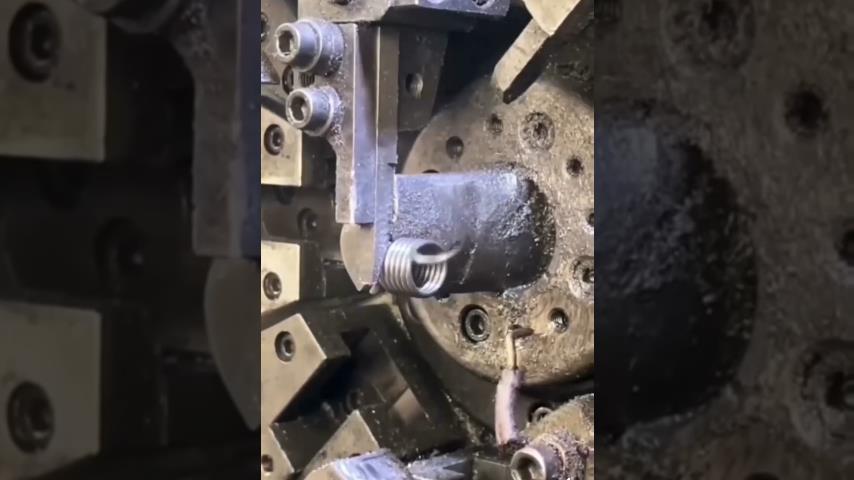 製作彈簧的有趣過程, 在自動機器上.