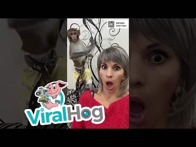 俄羅斯, 猴子阿布對其主人的視頻中的蜘蛛過濾器的反應. 當他看到虛擬蜘蛛在女人臉上游盪時, 動物受到驚嚇並試圖離開.