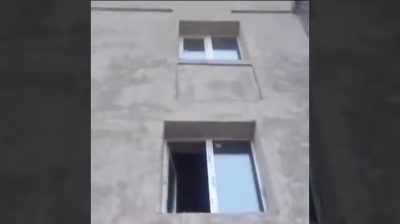在俄羅斯的一個建築工地上, 工人們對窗戶的對齊沒有給出太多依據.