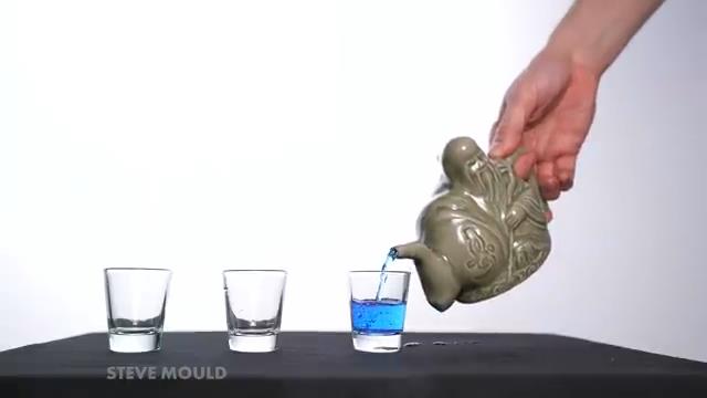 三個不同公寓的茶壺, 可以儲存三種不同的液體,並通過用手指覆蓋相應的孔來供應它們.