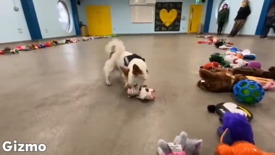 在愛爾蘭, 救援犬有機會從裝滿狗玩具的房間中挑選聖誕禮物.