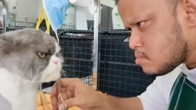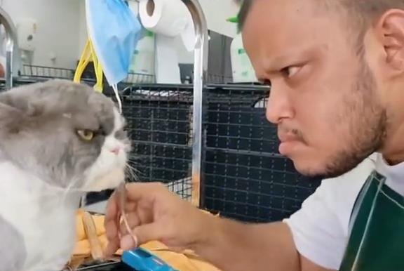 理髮後, 一隻貓看起來很像它的主人