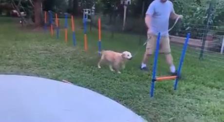 一隻貓以熟練的動作通過它主人設置的幾十個障礙.