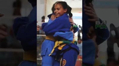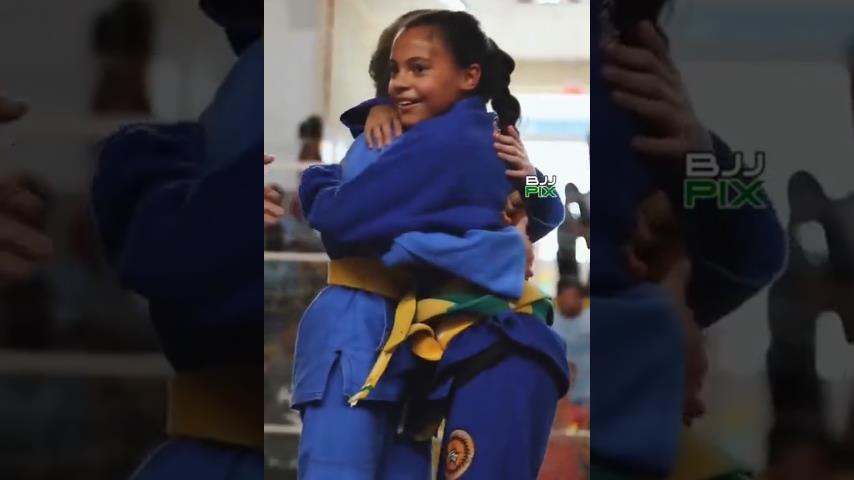 一場武術大戰之後, 一個女孩祝賀她的對手錶現同樣出色.