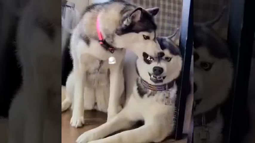 很難說這兩隻狗之間表達的是仇恨還是愛.