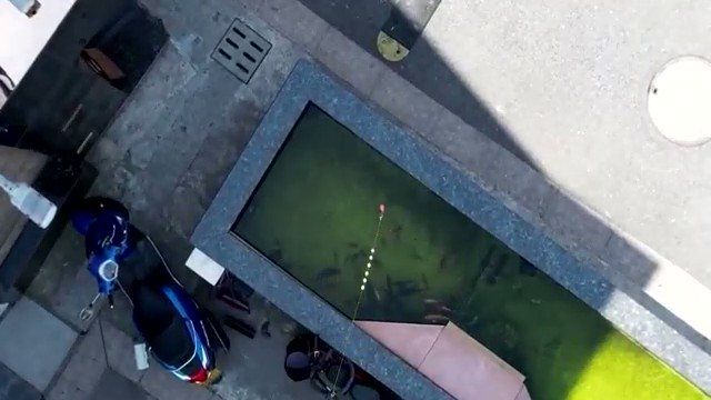 在中國, 上海居民用裝有攝像頭的無人機在小湖里抓魚, 在 2022 年 4 月開始實施的針對冠狀病毒的新封鎖期間.