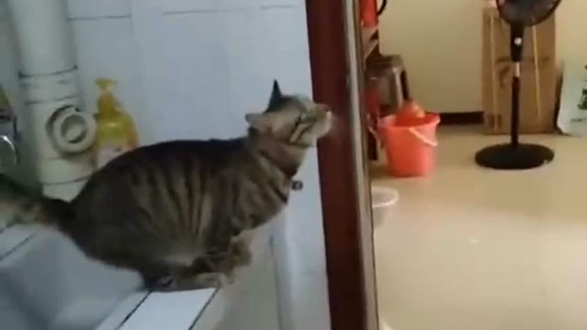 一隻貓跳上門, 並且足夠舒適,可以小睡一下.