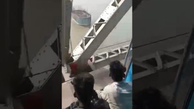 在印度, 一輛載有5名乘客的汽車與一輛三輪車相撞後落入河中。.