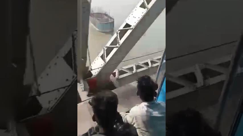 當印度的火車穿過一座橋, 小偷被安裝在金屬樑上,從乘客手中搶走手機.